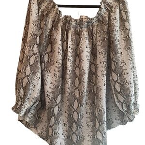 NWT Rue21 + women’s top, brown and cream pattern, shirring neckline. Can be worn on or off the shoulders. Long sleeves and lightweight. Size 3X