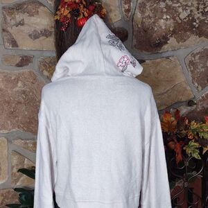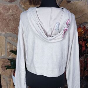 Rue21 Faux Fleece Cropped Floral Embroidered Hoodie Sz S