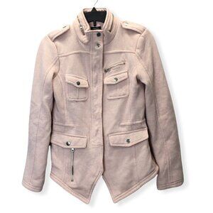 Rue21Fleece Moto Jacket Military Coat Size Small Blush Pink Zippers Snap