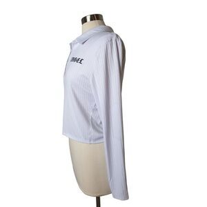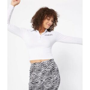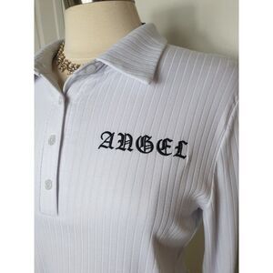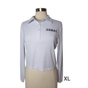 Rue21 Womens Crop Polo XL White Long Sleeve Angel Embroidered Stretch Cottage