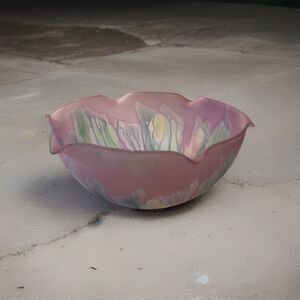 Rueven Glass Bowl By Nouveau Art Glass Co., Inc USA 9 Inch Hand Painted Sticker