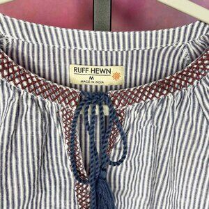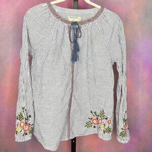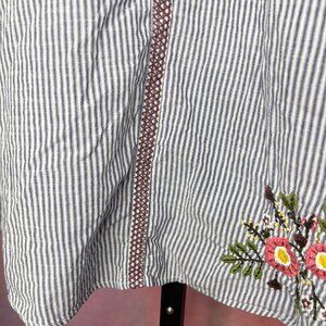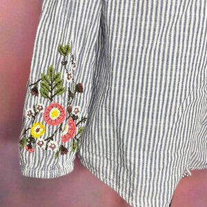 Ruff Hewn 100% Cotton Seersucker Blouse with Floral Embroidery, Size M