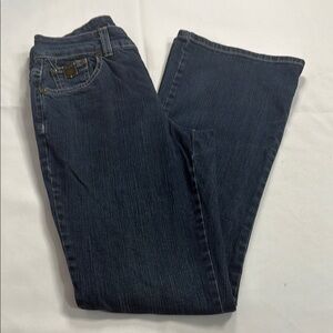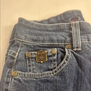 These Ruff Hewn jeans showcase a classic boot cut silhouette in a deep blue shade, perfect for versatile styling. Made from premium denim, they offer a comfortable fit and a timeless look. The gradual flare from the knee down enhances the overall shape, making them ideal for pairing with boots.