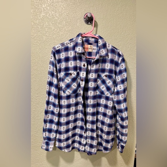 Ruff Hewn Blue and White Plaid Casual Button Down Shirt