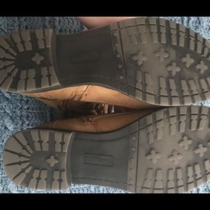 Ruff Hewn tan fall/winter boots. These boots are super cute but they are also super durable! Wore them for more than 2 winters and there is not a scratch on them. Excellent used condition. They are very warm, durable and water resistant.