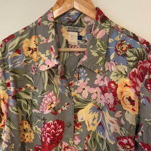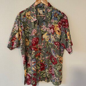 Ruff Hewn Cotton Tropical Floral Set Button Down Blouse AND Wrap Skirt Size L/16