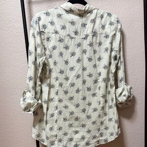 Ruff Hewn Cream and Blue Floral and Embroidered Button-Down Shirt