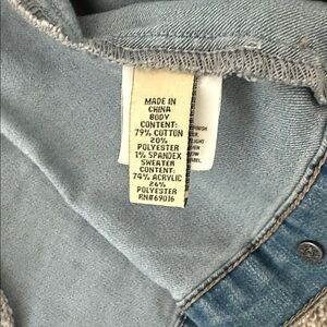 Jacket is in excellent condition. Has a gray woven sewn in scarf front. Jacket measures 20 inches pit pit 18 inches shoulder to shoulder.