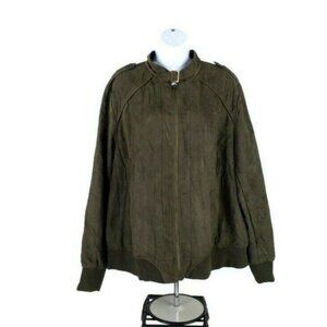 Ruff Hewn Green Faux Suede Bomber Style Zip Front Jacket Womens 2X Military NWT
