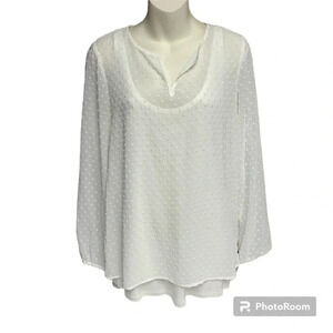 Ruff Hewn Grey. Cream sheer Swiss dot long sleeve blouse with cami size small