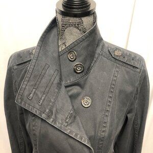 Ruff Hewn Jean Jacket Womens Size Medium Dark Gray Double Breasted Pockets
