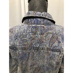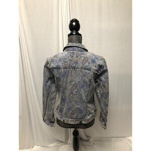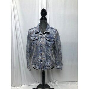 Ruff Hewn Jean Jacket Womens Size Medium Paisley Button Up Denim Boho Trucker