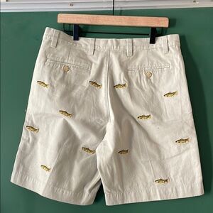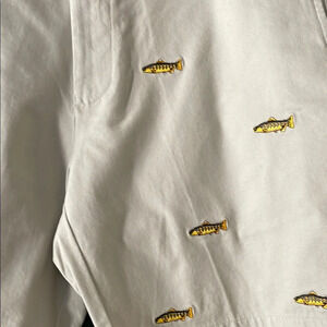 Ruff Hewn Men's 34 Cream Flat Front Shorts with Embroidered Fish Design