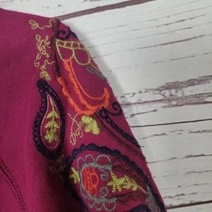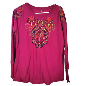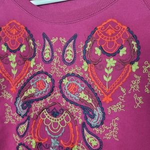 Ruff Hewn Pink Embroidered Paisley Pullover Sweatshirt Boho Womans Size Medium