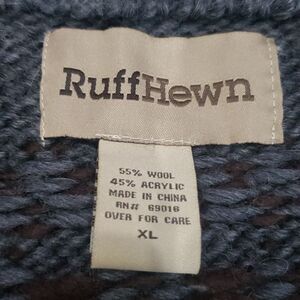 Ruff Hewn Sweater Mens Sz XL Long Wool Blend Gray Cardigan Geometric Pattern
