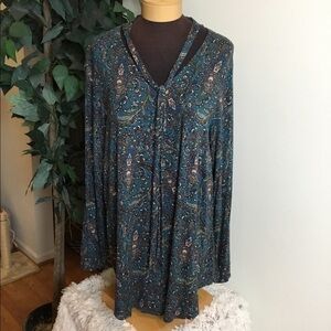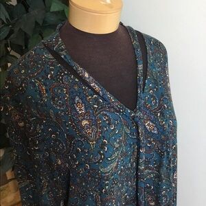 Ruff Hewn Turquoise paisley print 2x Blouse