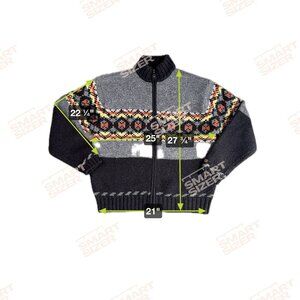 In a time when vibrant patterns spoke louder than words, this Ruff Hewn sweater emerges from the archives of the 70s, capturing the era's free-spirited ethos. With its intricate design and warm blend of acrylic and wool, it tells tales of adventures in cozy corners and starry nights.