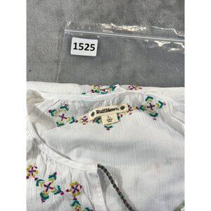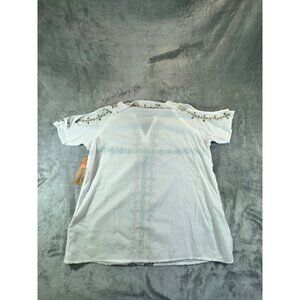 Ruff Hewn Womens Blouse Large Boho Embroidered Cold Shoulder Short Sleeve Tassel