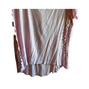 Women's Large Light Pink Blouse with lace detailing. I love the detail of this simple t-shirt. Beautiful Lace detail down the sides of the blouse along with lace detailing around the shoulder and collar. A top that could be easily dressed up or dressed down depending on the occasion.
