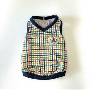 Ruff Ruff Couture Wimbledon Tennis V Neck Dog Tank in blue, orange, green houndstooth with navy trim. Size XS approximate measurements - length 8” width 6”
