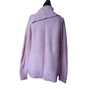 RuffHawn wool blend sweater in a razzberry color with speckles. With a cowlneck and big brown buttons. In gently used condition, no snags, rips or stains. See photos for measurements & material.