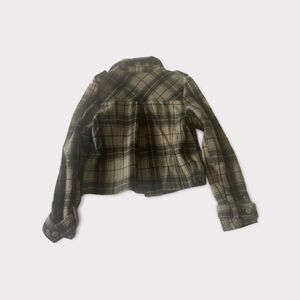 Ruff Hewn Stylish Wool Crop Jacket Blazer Casual Button Down Gray Plaid