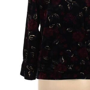Gorgeous velour pullover top in a soft and cozy floral print with pretty gathered bell cuff.Black background with subtle etched flowers in wine, tan and blue grey from their Grey Collection. You won't want to take it off! Think holidays or any cold winters night. Like new!
