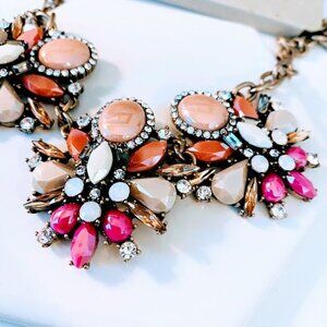 Ruff-Skch Statement Necklace & Earrings Set Multi-Color Gemstones & Rhinestones