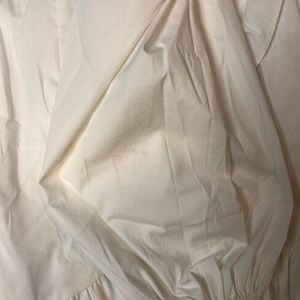 Wore twice. Has a minor ink stain on the sleeve near the elbow area but not extremely noticeable.