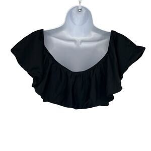 Ruffle Bandeau Bikini Swimsuit Top in Black Size XS