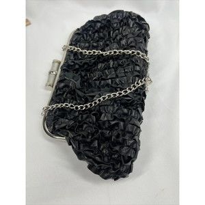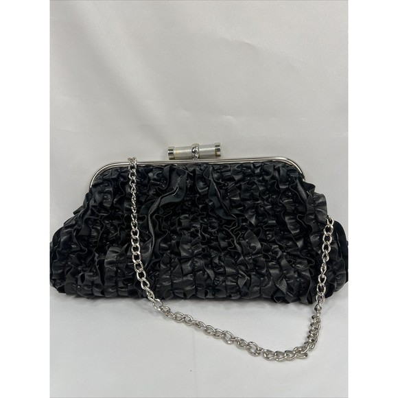 Ruffle Black Purse Shoulder Bag Strap Silver Chain Ruffle Accent