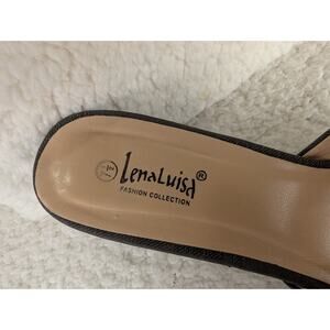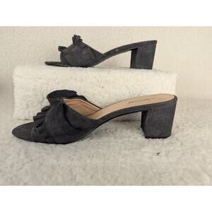 Ruffle Block Heel Denim Slide Sandals Sz 7.5 Lena Luisa