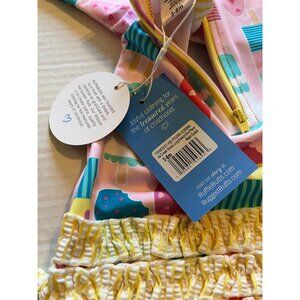 This adorable swimsuit from Ruffle Butts features a vibrant ice cream print, ideal for a sunny day. With UPF 50+ protection, it ensures your little one's skin is safe from harmful UV rays. The long sleeves and back zipper offer comfort and ease of wear, making it a delightful choice for your baby girl.
