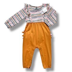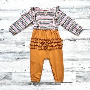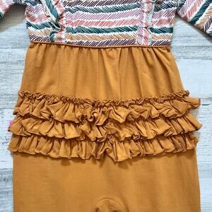 Ruffle Butts Girls Jumpsuit Size 2T Boho Stripe Mustard Ruffle Back Romper New