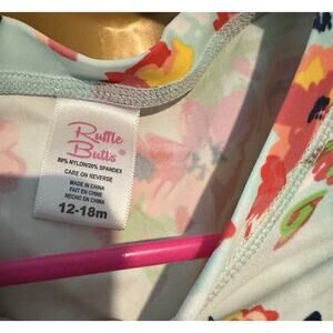 This Ruffle Butts long sleeve top is perfect for your little one's first dip in the pool or ocean. The vibrant floral pattern and multicolor design will make them stand out in any crowd. With a size of 12-18 months, it's perfect for toddlers who want to explore the water.