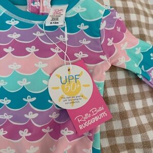 Charming pastel wave design. Long sleeves for sun protection. Perfect for playful beach days.