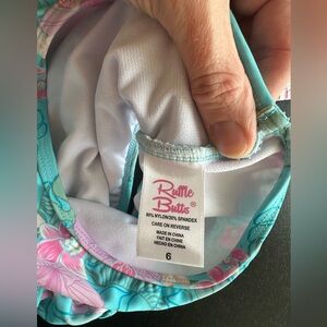 Ruffle Butts Pink Seersucker Rashguard and Tropical bottoms swim set