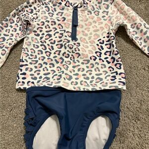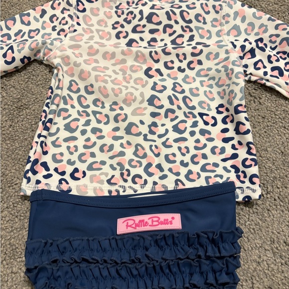 Ruffle Butts Pink and Blue Patterned Rash Guard