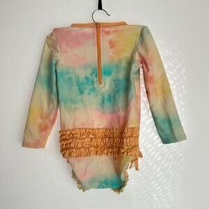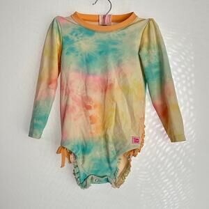 Ruffle Butts Rainbow Tie Dye One Piece Swimsuit Rash Guard Girl 3T Long Sleeve