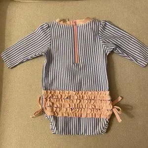 A wonderful addition to your little girl's swimwear, this One Piece Rash Guard is comfort and style rolled into one. Unlined with snaps at bottom that make for easy changing. Made with sun protected fabric for all day protection and comfort.