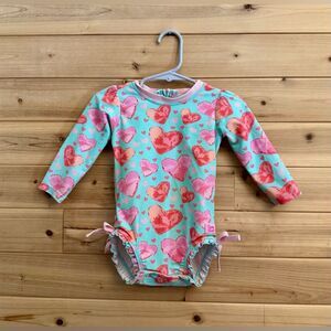Ruffle Butts Size 12-18 Months Hearts Long Sleeve Rash Guard One Piece Swimsuit