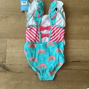 Ruffle Butts Swimming Suit. Girl’s size 5. New with tags. One piece. Rainbow and stripes pattern.