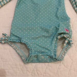 Ruffle Butts Toddler Bathing Suit - Blue Hearts and Stripes