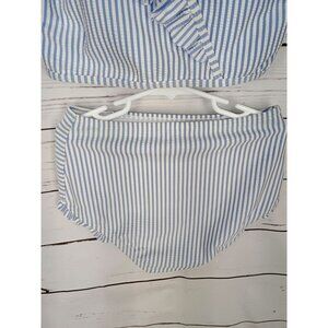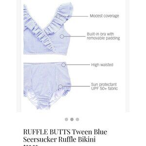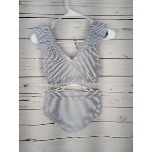 Ruffle Butts Tween Girl Striped Blue & White Ruffle Bikini Set For Girls Size 10