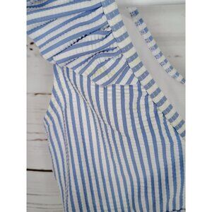 This charming bikini set combines a playful ruffle design with timeless blue and white stripes. Its comfortable fit ensures confidence for every splash.