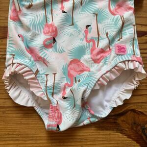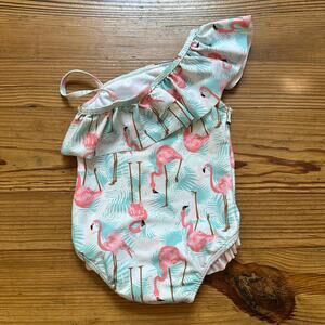 Ruffle Butts pink green flamingo ruffle one shoulder one piece swimsuit SIZE 2T