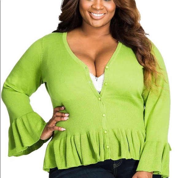 Green plus size Ruffle cardigan