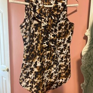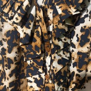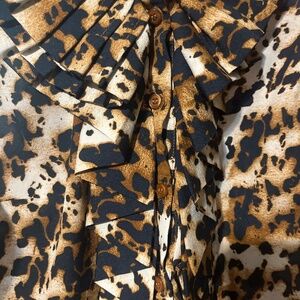 New York and Company animal printed ruffled 4 button down blouse. 100% Polyester. EUC