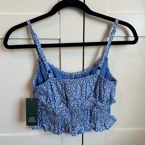 Never worn floral ruffle crop top with front open key hole detail that ties.