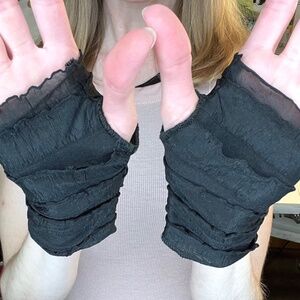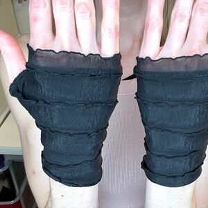 Short black ruffle fingerless gloves. Great for cosplays, mummy halloween costumes and gothic/alternative outfits! I also make these in more colors and patterns!